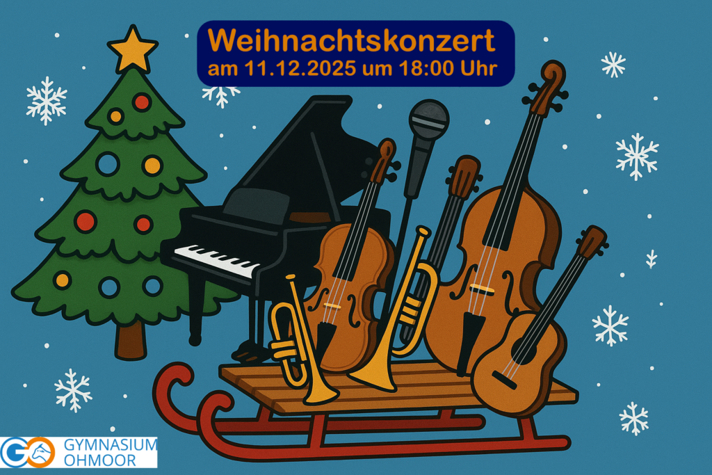 Das Orchester, die Chöre und die Bigband der Schule laden ein zum diesjährigen Weihnachtskonzert am Donnerstag, den 11.12.2025. Lasst euch in Weihnachtsstimmung bringen und lauscht den leisen und lauten Musikstücken und Songs, die die Ensembles des Gymnasiums Ohmoor für euch vorbereiten!