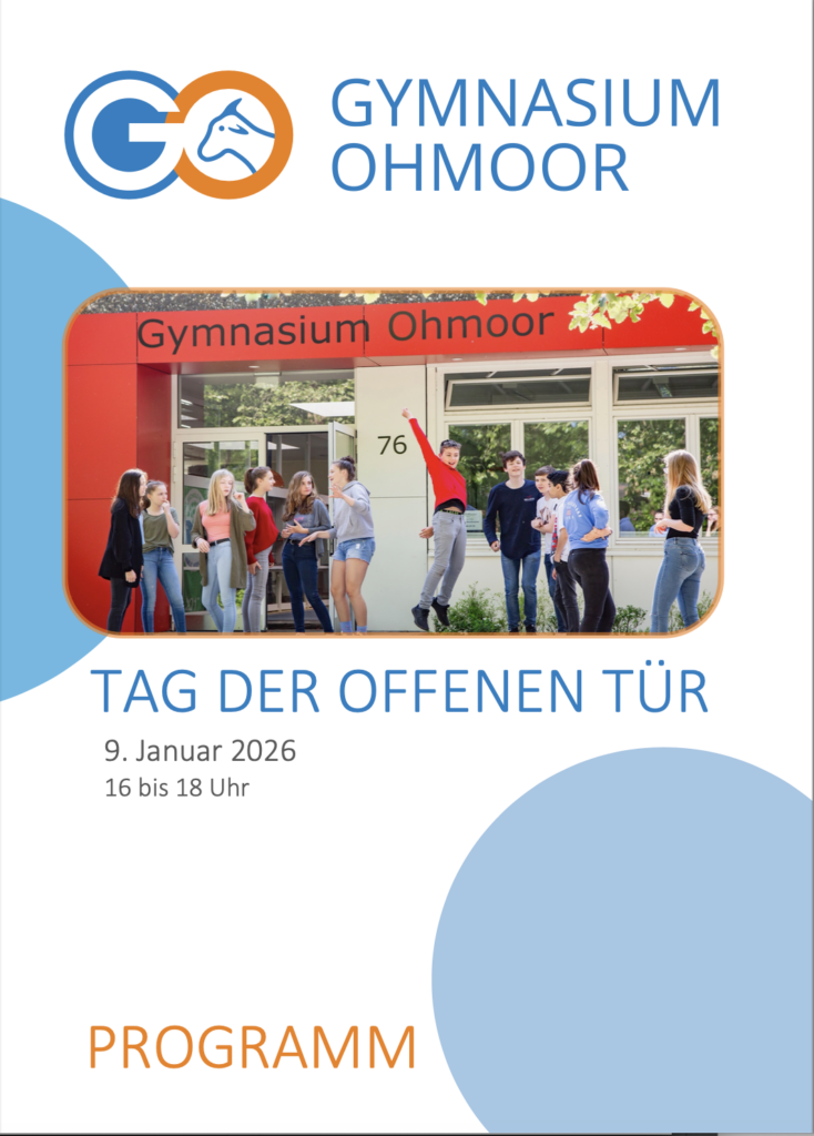 Wie sieht eigentlich der Klassenraum einer 5. Klasse am Gymnasium aus? Welche Fächer gibt es hier? Und wie fühlt es sich an, Schüler:in einer großen Schule zu sein? Sicherlich bewegt die eine oder andere Frage Ihr Kind und Sie als Familie. An unserem Tag der Offenen Tür wird es daher spannend: Wir laden Sie an diesem Tag herzlich ein, „Ohmoor-Luft“ zu schnuppern, einen ersten Blick in unsere Schule zu werfen und unser vielfältiges Angebot kennenzulernen. Viele unserer Klassen und Lerngruppen bereiten für diesen Tag die unterschiedlichsten Angebote vor und freuen sich, Ihnen diese in unserer Schule vorstellen zu können. Ihre Kinder können dabei viel Neues entdecken, fachliche Dinge ausprobieren, mit anderen Kindern in Kontakt treten, sich in den Ganztags-Räumen umsehen und vieles mehr… Wir freuen uns auf Sie und Euch!