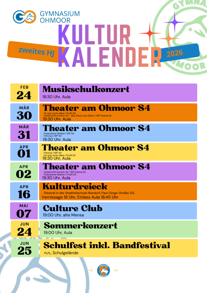 Neuer Kulturkalender von Autor · 2. Februar 2026 Der Kulturkalender für das 2. Halbjahr 2025/26 ist da! Save the dates! Plakat: B. Postel